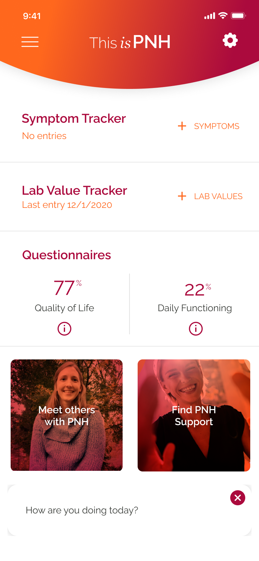 I worked with the communications agency Centron as the primary visual and UX designer for an iOS app to support patients with Paroxysmal nocturnal hemoglobinuria (PNH) a rare, life-threatening blood disease that causes red blood cells to break down prematurely. The app helped patients track symptoms, tests and general wellbeing with interactive daily checkins.